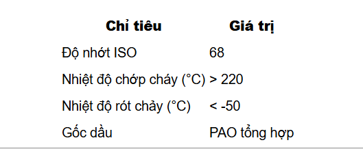 - Độ nhớt ổn định, giúp bôi trơn tốt trong môi trường lạnh khắc nghiệt